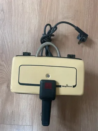 Sandwichera vintage de la marca Magefesa, fabricada en España. Su diseño clásico en color crema le da un toque retro a tu cocina. Excellent condition on the inside Small cosmetic dent in the outside Plug is vintage Spanish, needs adaptor to plug to eu sockets Size about 23 cm length, 11 width Works great - Asa metálica. - Indicador luminoso.