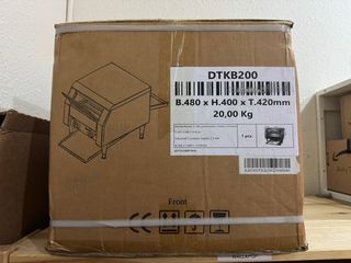 Tostadora de cinta profesional, nueva y sin uso, en su embalaje original. Ideal para bares, cafeterías y restaurantes con servicio continuo. Sistema de cinta para tostado uniforme y rápido. Construcción robusta para uso intensivo. Precio real: 318,99€ Venta por liquidación de restaurante. Entrega: recogida en local.