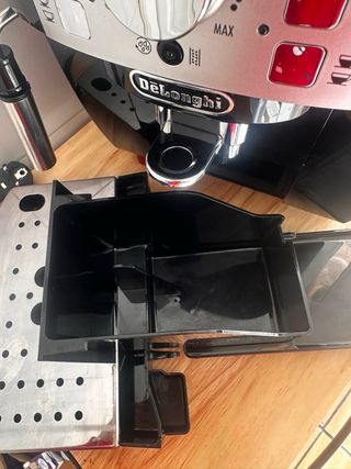 Cafetera superautomática DeLonghi Magnifica S en color negro. - Diseño moderno y compacto. - Panel de control intuitivo con dial. - Vaporizador para espumar leche.