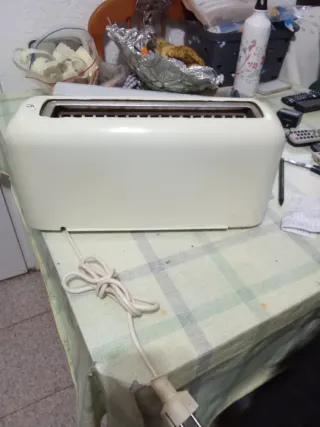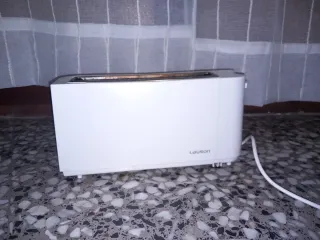 Tostador Taurus de color blanco con ranuras para dos tostadas. Ideal para tu cocina. Por fuera está un poco feo, pero funciona perfectamente. - Diseño compacto. - Cable de alimentación incluido.