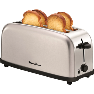 Tostadora de la marca Moulinex con un diseño moderno y elegante. - Acabado en acero inoxidable y negro. - Ranura amplia para diferentes tipos de pan.