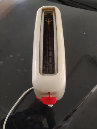 Tostadora de pan con un diseño retro y elegante. Su carcasa blanca le da un toque clásico. - Mecanismo de expulsión de pan. - Ranuras para tostar. - Cable de alimentación.