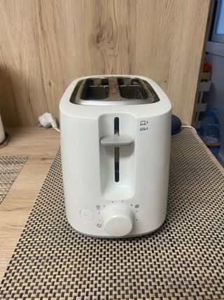Tostadora Philips Daily, completamente nueva y en su embalaje original. DESCRIPCIÓN: 🍞 ¡Desayunos perfectos cada mañana! ✅ Producto verificado y funcionando perfectamente. Esta tostadora Philips (modelo HD2581/90) es compacta, potente y elegante. Sus 3 mejores características: 1. 8 ajustes de tostado para dejar el pan exactamente a tu gusto. 2. Rejilla calientabollos integrada para calentar croissants o panecillos. 3. Funciones de descongelar y recalentar en el mismo proceso. 💰 En tienda cuesta 30€ 📍 Ubicación: Badajoz. 📦 Estado: Devolución de Amazon. Nueva