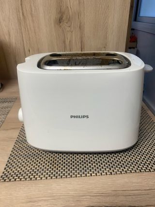 Tostadora Philips de color blanco. - Diseño moderno y compacto. - Ranuras amplias para diferentes tipos de pan. - Palanca de elevación. - Cable de alimentación incluido.