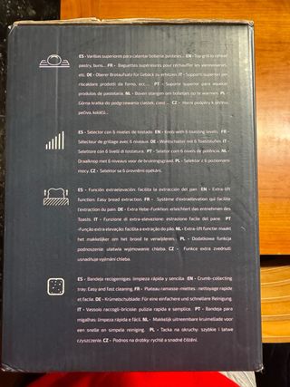 Ha sido usado solo 2 veces. Funciona perfectamente, con 6 niveles de tostado, temporizador y bandeja recogemigas. Ideal para tostar pan, bollería o calentar bocadillos fácilmente. 10€ (negociable)