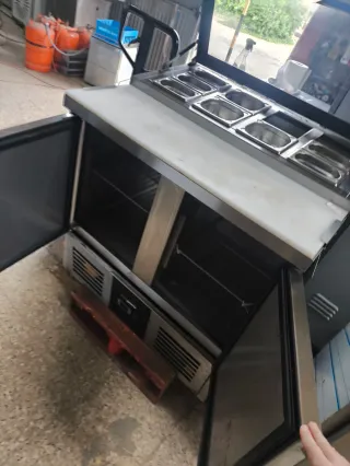 MESA fría de ingredientes con un año de uso con cubetas para ingredientes. -Revisado y probado en perfecto estado y funcionamiento. -Con garantía y posibilidad de envío a toda España, Se puede ver y probar. tel: 691114517 -COMPRAMOS Y VENDEMOS MATERIAL DE HOSTELERÍA BARATO: lavavajillas, lavaplatos, botelleros, lavavasos, hornos, freidoras electricas, mesas frías, bajos mostradores, armarios 4 puertas, congeladores, neveras, cocinas a gas, freidoras a gas, hornos a gas, mesas de pase, mesa de acero, mesa con balda, estanterías, campanas, turbinas, tostadores, sandwicheras, cestas, planchas etc.