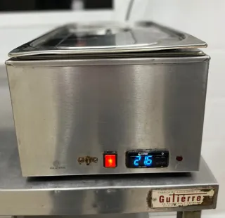 Atemperador de chocolate de acero inoxidable con 2 recipientes , funciona con baño maría. - Panel digital con control de temperatura. - Indicador luminoso de encendido. - Diseño compacto y robusto.