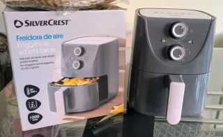 Freidora de aire SilverCrest, ideal para cocinar sin apenas aceite. - Capacidad de 2 litros. - Potencia de 1000W. - Rango de temperatura de 80 a 200°C.