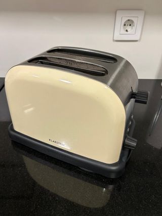 Tostador de pan y para bagels - Marca: Klarstein - Color: Crema y acero - Ranuras para tostadas y para bagels (función para bagels) - En perfectas condiciones, funciona a la perfección - No conservo caja Medidas: 30cm ancho x 20 alto x 19 fondo 1,5kg