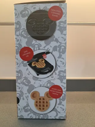 Máquina para hacer gofres con el icónico diseño de Mickey Mouse. Ideal para un desayuno divertido. - Placas de cocción antiadherentes. - Tapa con cierre de seguridad. - Prepara un gofre con forma de Mickey por tanda.