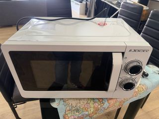 Microondas de color blanco con diseño moderno. - Marca: Jocel - Color: Blanco - Controles giratorios para tiempo y potencia. Unico detalle, marcas que tiene en la parte de arriba que cuando lo compre ya las tenia! Pero no afectan en su funcionamiento