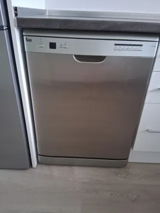 Lavavajillas de la marca Teka, modelo LPT 645. Su acabado es en color plateado. - Panel de control con botones. - Asa integrada para apertura. - Diseño moderno. Estéticamente está nuevo. Pero no le funciona el botón de encendido. El arreglo no es complicado si se entiende de electrónica. Se puede arreglar o utilizar para piezas.