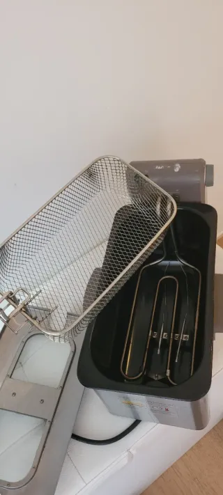Freidora eléctrica doble para bar – 2 cubas Freidora eléctrica profesional ideal para bares, cafeterías y negocios de hostelería. Dispone de dos cubas independientes, perfecta para trabajar distintos productos a la vez. 🔹 2 cubas independientes 🔹 Funcionamiento eléctrico 🔹 Uso profesional 🔹 Ideal para tapas, patatas, pescado, croquetas, etc. 🔹 Robusta y fácil de usar Muy práctica para locales con servicio continuo o cocina pequeña que necesita rapidez. 📍 Se puede ver sin compromiso 📦 Lista para trabajar 💬 Atiendo mensajes por Wallapop Ventajas destacadas de la freidora FRY-9+9 • Freidora eléctrica profesional de doble cuba •Construcción íntegra en acero inoxidable •Dos cubas soldadas, higiénicas y resistentes •Grifos independientes para el vaciado del aceite •Cabezal giratorio y desmontable en cada cuba •Control de temperatura independiente por cuba •Termostato regulable hasta 190 ºC •Sistema de seguridad térmica con rearme manual •Indicadores luminosos de funcionamiento •Cestas extraíbles para una limpieza cómoda •Diseño estable con patas de goma antideslizantes Características técnicas • Capacidad total de aceite: 6 + 6 litros •Número de cubas: 2 •Medidas de las cestas: 200 × 220 × 100 mm •Potencia: 4.000 + 4.000 W •Alimentación: 230V / 50Hz •Dimensiones: 570 × 460 × 330 mm •Peso: 11 kg La FRY-9+9 es una freidora industrial eléctrica ideal para restaurantes, freidurías y bares que requieren mayor producción, versatilidad y control total del proceso de fritura. Precio 235 € mas iva