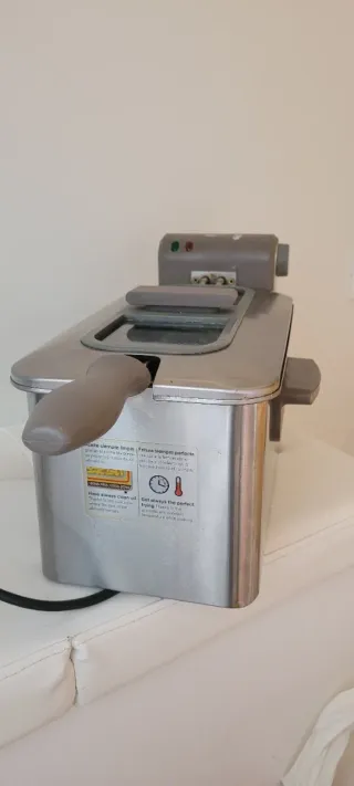 Freidora industrial eléctrica Irimar FRY-9 ideal para bares, cafeterías y hostelería profesional. Freidora de sobremesa robusta y fácil de usar, perfecta como apoyo o sustitución de otra freidora en cocina. Características principales: 🔹 Capacidad de aceite: 6 litros (cuba simple)  🔹 Potencia: 4000 W  🔹 Alimentación: 230 V / 50 Hz  🔹 Medidas aproximadas: 28 cm × 46 cm × 33 cm  🔹 Peso aproximado: 7,5 kg  🔹 Incluye grifo de vaciado con fondo inclinado para extraer el aceite con facilidad  🔹 Construida totalmente en acero inoxidable con bordes redondeados, fácil de limpiar  🔹 Termostato de trabajo regulable hasta 190 °C y termostato de seguridad hasta 210 °C  🔹 Cesta de fritura incluida: 200 × 220 × 100 mm aproximadamente  Freidora práctica y fiable para preparar patatas, croquetas, pescados rebozados y otros productos fritos de forma constante en tu negocio. Interesados, escribir por mensaje de Wallapop.o wasap Precio 164€ mas iva