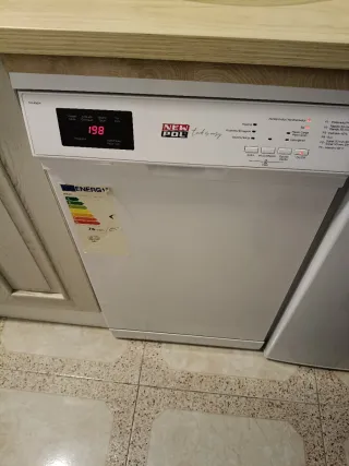 Lavavajillas New Pol NW456W con capacidad para 10 cubiertos. - Modelo: NW456W - Capacidad: 10 cubiertos - Programas: P1-Prelavado, P2-Rápido 30 min, P3-Delicado 40°C, P4-Eco, P5-Súper 50 min 65°C, P6-Intensivo 65°C - Funciones: Higiene, Aclarado/Enjuagar, Secado/Secar, Abrillantador, Sal, Detergente - Opciones: Extra, Inicio Diferido, Opción - Control: On/Off Dimensiones: 85 x 45 x 60 Cm