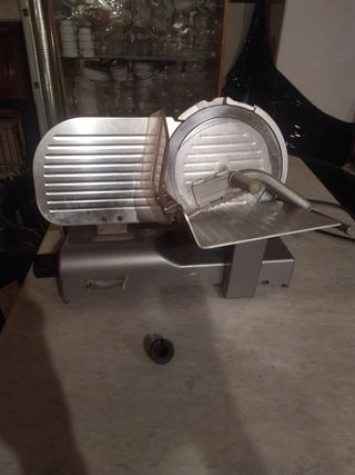 Cortadora de fiambre SOGO de 150W, en excelente estado, casi sin uso. - Diseño compacto y moderno. - Cuchilla de acero inoxidable. - Ajuste de grosor de corte. Vendo cortadora de alimentos eléctrica SOGO SS-926 de 150W. Solo se ha sacado de la caja para probar que funciona, pero nunca se ha llegado a usar. Está impecable, con plásticos y caja original. Cuchilla de acero inoxidable (170mm). Grosor de corte ajustable (0 a 15mm) para embutido, pan o queso. Diseño plegable: no ocupa nada en la cocina. Base con ventosas para máxima seguridad. Se entrega con manual y accesorios. ¡Oportunidad por estado y precio!