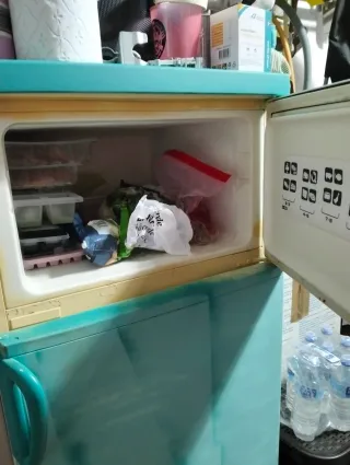 Nevera de dos puertas, antigua de motor bueno está funcionando ideal para una segunda nevera, está pintada porque se puso amarilla las puertas - Color azul. - Dos puertas.