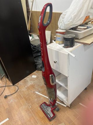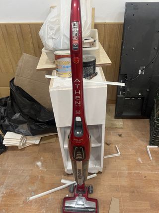 Aspiradora escoba Hoover Athena de color rojo. - Modelo: Athena - Voltaje: 25.2V - Autonomía: 15-60 min - Modos: OFF, FLOOR, CARPET, TURBO
