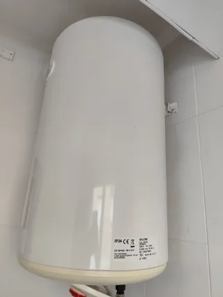Termo eléctrico de agua con una capacidad de 80 litros. - Marca: MLH - Capacidad: 80 litros - Incluye termómetro indicador de temperatura.