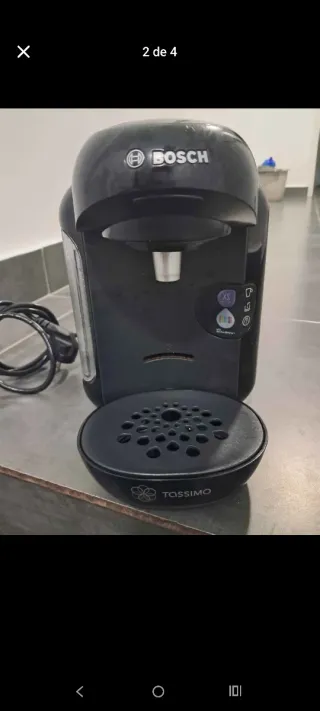 Cafetera de cápsulas Bosch Tassimo en color negro. Compacta y fácil de usar. - Diseño moderno. - Bandeja extraíble para tazas de diferentes tamaños. - Depósito de agua.