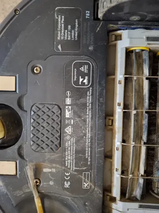 Se le acaba pronto la batería pero funciona perfectamente. El asa de agarre está rota Robot aspirador Roomba circular, ideal para mantener tus suelos limpios. - Base de carga incluida. - Cable de alimentación.