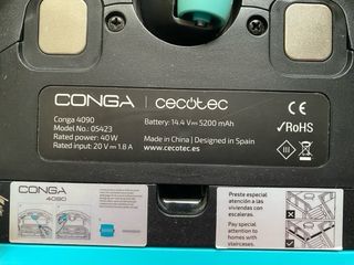 Robot aspirador Cecotec Conga en color negro. Incluye su base de carga y adaptador. - Diseño redondo. - Acabado brillante en la tapa superior. - Botones táctiles en la parte superior. - Casi sin uso - Con recambios originales sin estrenar