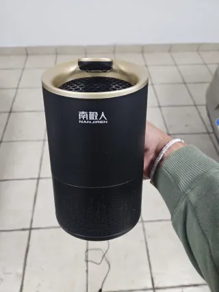 Dispositivo para eliminar mosquitos con un diseño moderno y compacto. - Color negro con detalles dorados. - Rejilla superior de ventilación. - Base con patrón de puntos. - Marca: NANJIRE -No tiene caja Caja - Carga con USB