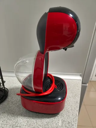 Cafetera Dolce Gusto Krups modelo Lumio en color rojo + clasificador de cápsulas. - Diseño compacto y moderno. - Fácil de usar. Tiene un fallo que el tirador de café frío o caliente se metió dentro de la maquina y el único modo de tirar un café es meter algo como pulsador o bien desmontarla y arreglarla. Salvo esto, funciona perfectamente .