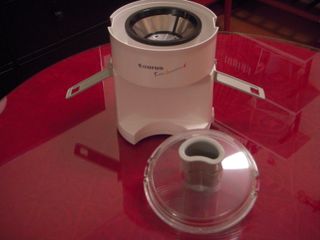 Exprimidor de cítricos Ufesa Citron. - Diseño transparente con medidor de capacidad. - Asa ergonómica. - Base blanca con detalles naranjas.