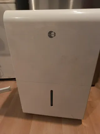 Deshumidificador de la marca Equation en color blanco. Cuenta con un diseño moderno y compacto. - Indicador de nivel de agua. - Asa para facilitar su transporte.