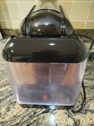 Cafetera automática Cecotec Cumbia 6000 en color negro. - Panel de control táctil. - Vaporizador para espumar leche. - Bandeja recogegotas extraíble. Funciona bien pero el molinillo se atasca en molido fino, con café molido hace un muy buen café. Recién realizado mantenimiento descalcificación. Repuesto molinillo para reparar 50euros en tienda. Se vende por compra de cafetera expresso.