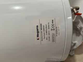 Termo eléctrico de color blanco, ideal para calentar agua. Resistencia estropeada, esta nuevo. - Soporte de pared incluido. - Conexiones visibles en la parte inferior. Precio nuevo 120 aproximadamente. Precio negociable.