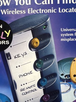 Sistema localizador electrónico para encontrar objetos perdidos. - Incluye localizador para llaves. - Incluye localizador para teléfono. - Incluye localizador para mando a distancia. No se ha llegado a usar, la caja está des precintada y en su momento se probó si sonaba la llave azul, guardado en un armario desde aquella