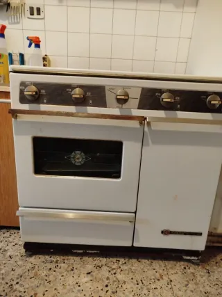 Cocina de gas antigua de color blanco. Cuenta con horno y mandos.Escucho ofertas. - Diseño clásico. - Mandos frontales. - Puerta de horno con ventana.