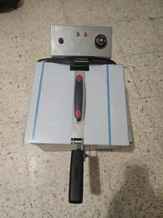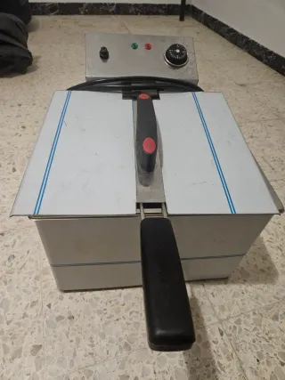 Freidora industrial de acero inoxidable, usada pero en buen estado. Ideal para negocio de comida. - Capacidad para freír grandes cantidades de alimentos. - Incluye dos cestas de freír. - Dispone de un termostato para regular la temperatura del aceite. - Fácil de limpiar y mantener.