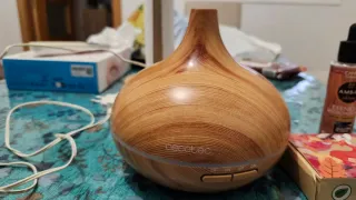 Difusor de aromas con acabado en madera, ideal para crear un ambiente agradable. Cecotec Humidificador Ultrasónico y Difusor de Aromas con Temporizador Pure Aroma 300 Yang. 10 W, 300 ml, Temporizador hasta 6 horas, 7 Colores LED, Función Aromaterapia, Ultrasilencioso. De regalo aceite de canela y caja con 6 aceites esenciales. - Diseño elegante y moderno. - Funcionamiento silencioso.