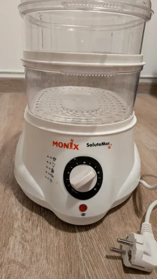 Vaporera eléctrica Monix SaluteMax, ideal para cocinar alimentos al vapor de forma saludable. - Dos niveles de cocción. - Temporizador. - Indicador de nivel de agua.