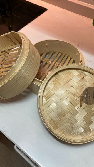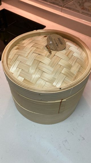 A estrenar, nunca se usó. Vaporera de bambú apilable, ideal para cocinar al vapor. - Material: Bambú natural. - Diseño trenzado en la tapa. - Estructura cilíndrica.