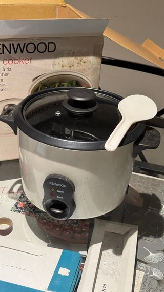 Arrocera Kenwood en buen estado. - Modelo de cocina para arroz. - Incluye pala para servir y bandeja vaporera.