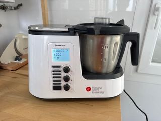 Monsieur Cuisine Édition Plus. Va perfecta. Tiene una pequeña raja en el plástico que no afecta para nada a su funcionamiento (ver foto). Muy poco uso, por eso la vendemos. Viene con todos los extras: espátula, vaporera, cesta interior, etc. Lo único que no tenemos es la mariposa. En mano en Málaga, por favor 🙏🏻