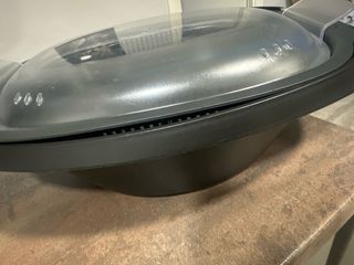 Vaporera para preparar comida al vapor, de tres niveles, lo que es súper práctico porque puede preparar tres comidas al mismo tiempo, se pueden usar los tres a la vez o por separado. Se ha usado un par de veces, funciona perfectamente , se puede ver en la tercera foto como está encendida .