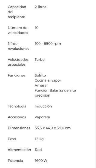 Vaporera mambo cecotec modelo 10090, con 1 solo uso impecable,nos cambiaron el robot y nos quedo la vaporera,aparte regalo cesta para hervir en la jarra.