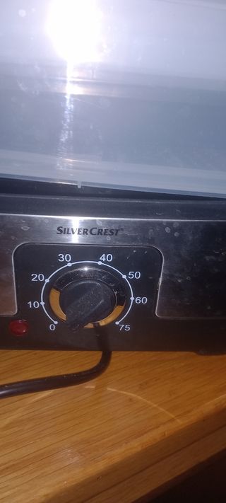 Vendo vaporera eléctrica Silvercrest de 750ml, en buen estado. - Capacidad: 750ml - Control de temperatura - Incluye recipiente de plástico transparente.