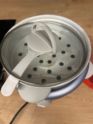 Vaporera Cecotec con 3 pisos y un tupper para hacer arroz al vapor