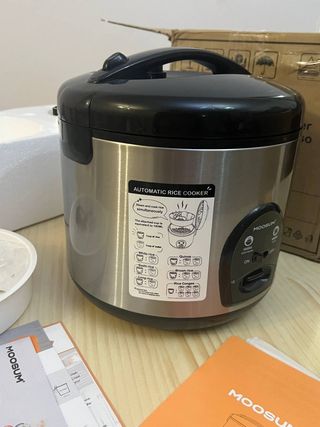 Moosum 1 Pieza MOOSUM Arrocera Eléctrica De Enchufe De Pared Con Un Solo Toque Para Arroz, 5 Tazas Crudo/10 Tazas Cocido, Arrocera Rápida Y Conveniente Con Vaporera, Carcasa De Acero Inoxidable Y Función De Calentamiento Automático. Precio original 50-60 €