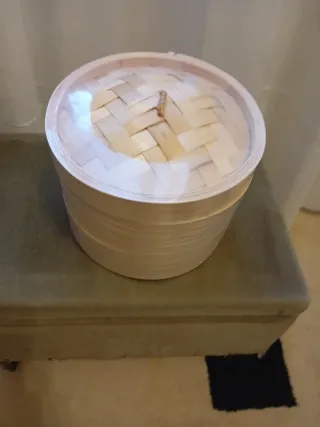 Vaporera de bambú ERNESTO, prácticamente nueva. Ideal para cocinar al vapor tus verduras y pescados favoritos. - Incluye dos pisos de bambú. - Estructura de bambú resistente y de alta calidad. - Tapa de bambú con asa.