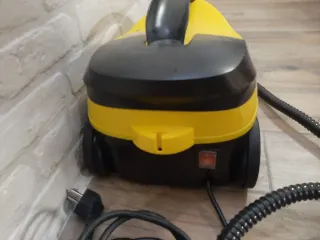 Limpiadora a vapor Karcher en color amarillo. - Incluye pistola de vapor. - Cable de alimentación.