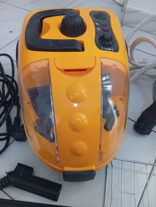 Set de vaporeta eléctrica con varios accesorios para limpieza y planchado. - Unidad principal de vaporera. - Plancha de acero. - Manguera flexible. - Mango con gatillo. - Tubos de extensión. - Cepillo para suelos. - Accesorio de boquilla. Posibilidad de negociar el precio.