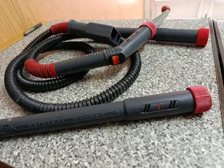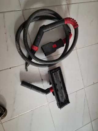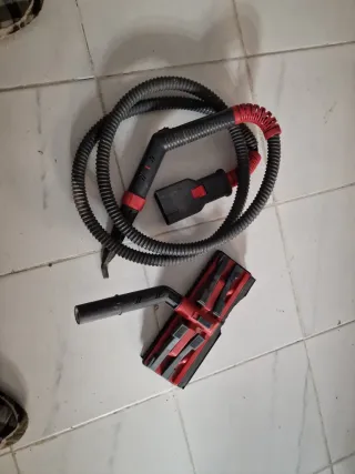 Manguera para vaporeta Lady Vap 2000. Incluye accesorios. - Manguera flexible negra con detalles rojos. - Conector de plástico gris y rojo. - Tubo extensor negro con extremo rojo. - Cepillo accesorio con cerdas. Solo lo que se ve en las fotos