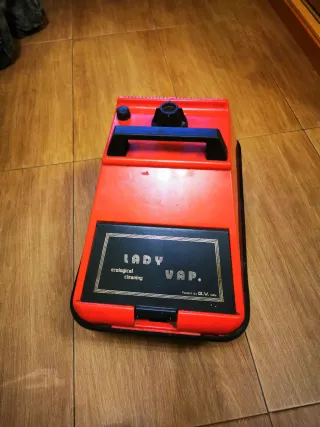Aspiradora de vapor Lady Vap, en color rojo. Se encuentra en buen estado, aunque presenta algunas marcas de uso superficiales. solo lleva el tubo fino de impular el vapor. - Limpieza ecológica. - Marca: Lady Vap. - Diseño vintage.